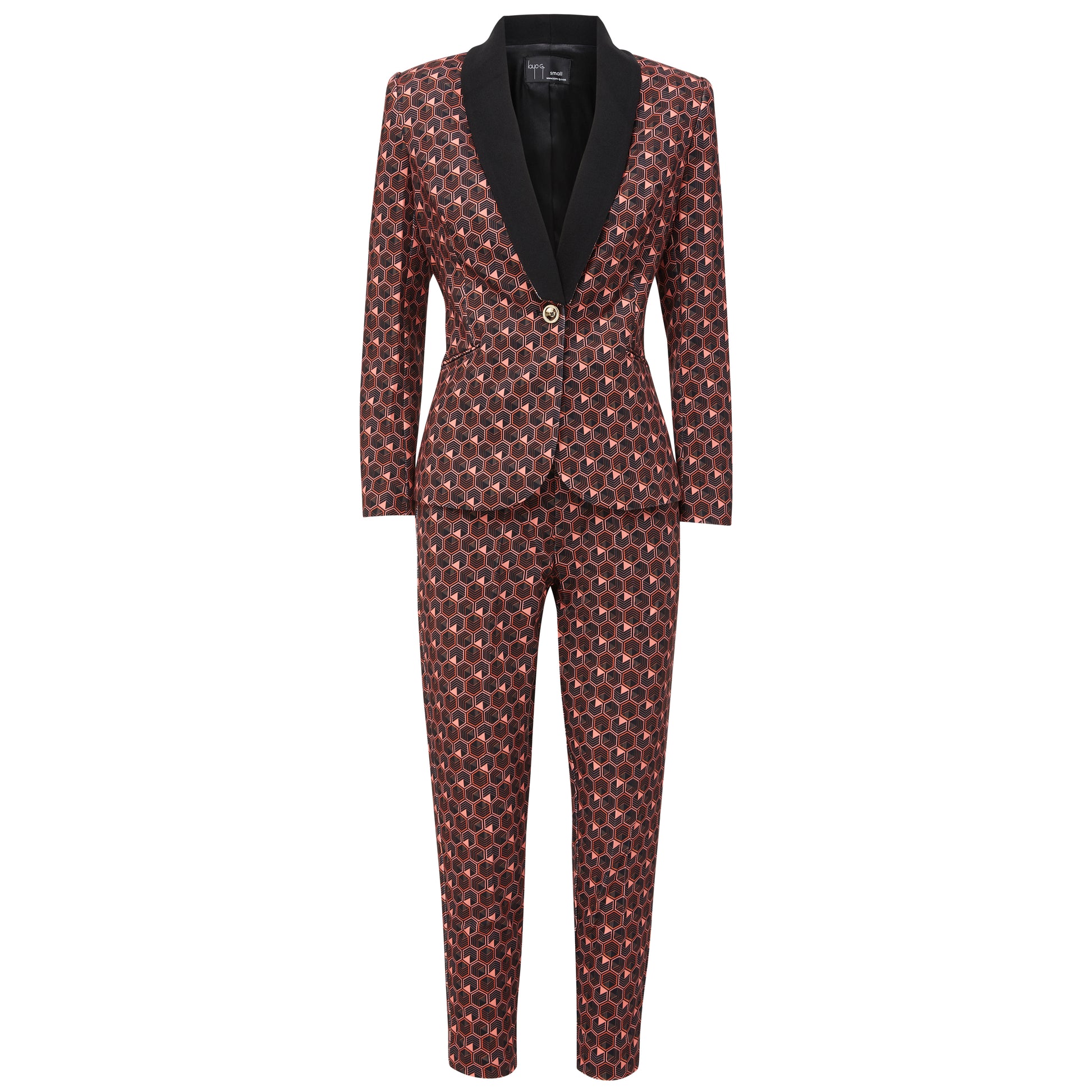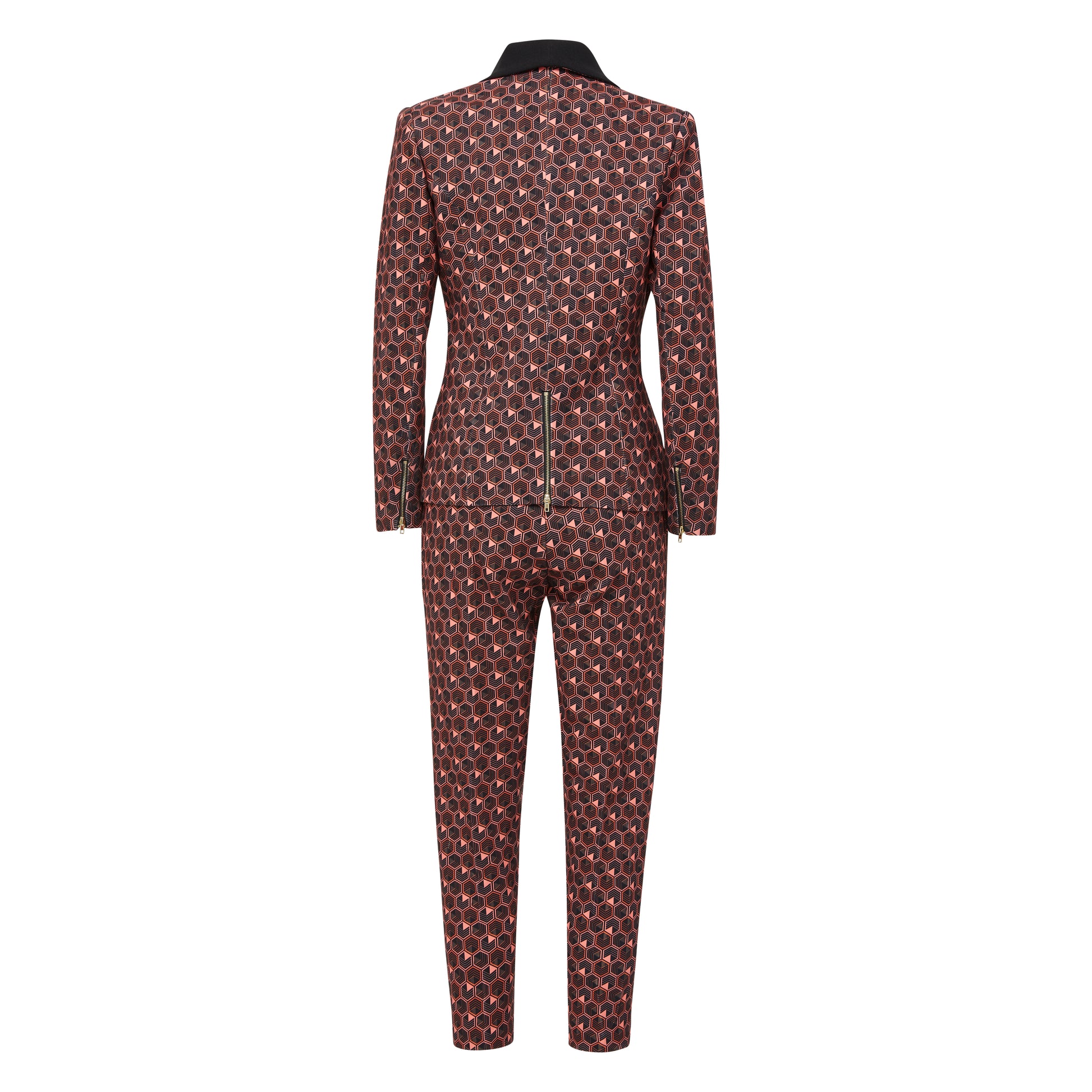 The look and fit of a suit, the high quality of a structured blazer, the feel and comfort of leggings. You simply can't beat this suit. Crush your busy day in style and comfort in our classic leggings suit. The latest addition to our patterned collection is this bold yet classy diamond patterned suit in a coral-pink color with black diamond detailing. It is in our classic stretch fabric that is suitable for all boss ladies. This classy pantsuit-set is the perfect look for the boss lady that lets her work and her outfit speak for itself. Our signature suit is for every woman that wants to walk into any room and say “I’m the boss” without uttering a word. The slim wrist fit and slim pants give the suit a modern appeal for the trendy professional. The gold zipper details at the wrists allows for an ultra slim-fit, yet can be worn effortlessly while unzipped. The pants are made with high quality stretch material to provide comfort in your busy day, yet has the look of a pant suit. The suit gives off hints of "glam" with the gold zipper detailing on the wrists and back of the jacket and single gold button in the front. Pair the suit with a button up shirt underneath for a classic look, a tie-neck shirt for a fun look, or no shirt at all for a daring night look. Shine in front of your colleagues during the day, and in front of your friends and lovers during off-work hours. The versatility of the suit will make it a timeless addition to your closet.